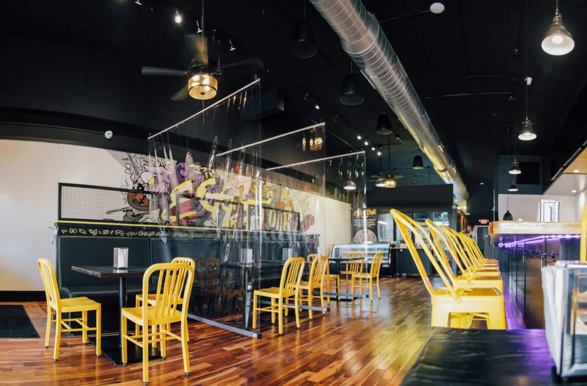 Egg + Flour was looking for a solution to keep employees and guests safe in their restaurant. With the guideline in place to stay 6 feet apart from the next person, Egg + Flour would have had to eliminate half of their seating to open by these standards. This would heavily limit their capacity. This restaurant needed a solution that is both effective and easy to maintain, with customer and employee safety in mind.