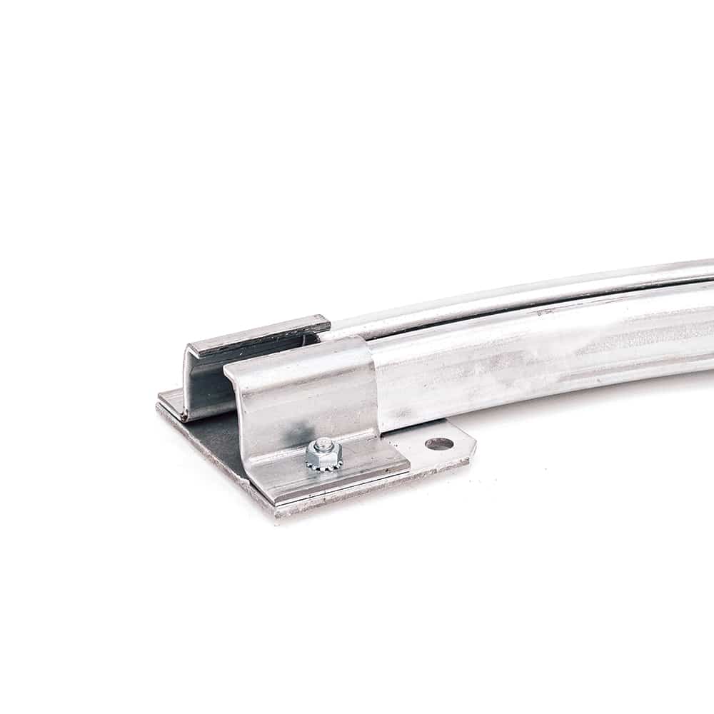 Connecting 90 degree curved track to straight track allows rollers to follow around a corner. Looking for a complete custom Curtain Wall system? Get a quote on a complete Curtain Wall system for exclusive savings.