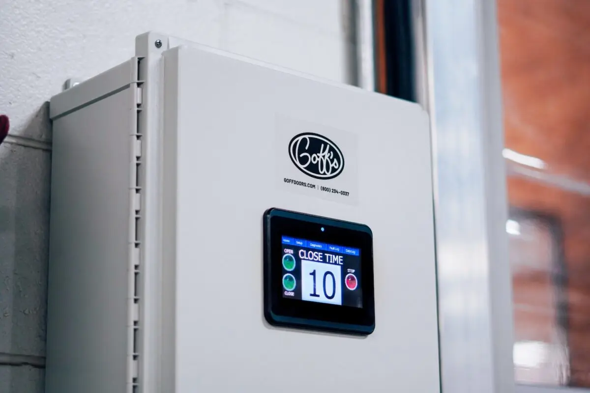 The Goff’s Smart Touch Screen is based on 5 user friendly screens for a variety of functions. The Home Screen displays your auto-close timer countdown, as well as Open, Close, and Stop buttons for door functionality. The Setup Screen is used to specify how your door will function, set duration for the auto-close function, and more. The Diagnostics Screen simplifies safety checks and makes sure your door systems are up and running. This reduces downtime and lowers your cost of ownership. The Fault Log Screen displays numbered fault code logs for detailed records on any failures in your door system for faster servicing. Finally, the Data Log Screen keeps a detailed log of the door’s total cycle count and total energy usage.
