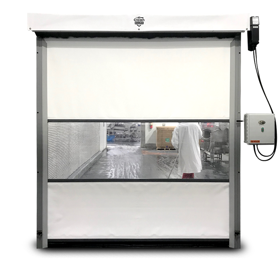 Our Clean Guard doors feature an IP65 rated Direct Drive Motor, IP67 Photo Eye safety sensors, and a NEMA4X enclosed control system, all ready for the harshest wash down environments.