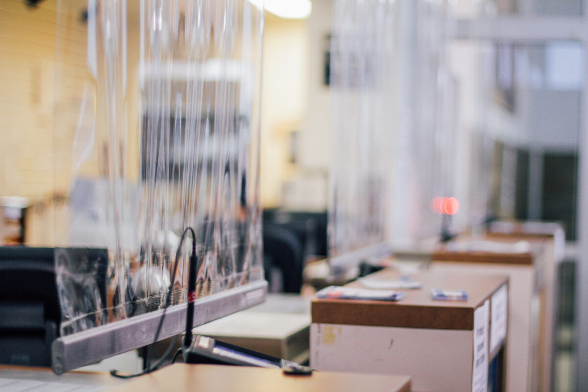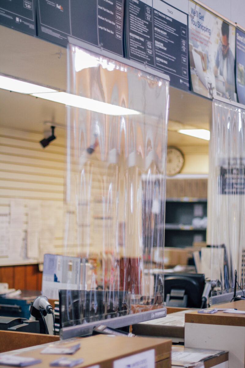 The post office can be a high traffic area during specific times of the day. Constant business at the same counter puts employees in danger of contracting airborne viruses such as COVID-19. Quickly and easily installing a hanging personal safety partition between the employee and customer is an easy and safe solution. However, resorting to a plexiglass sneeze guard is not the answer. Plexiglass can be dangerous because it cracks and splinters leaving little sharp plastic pieces everywhere. Plexiglass sneeze guards have many downfalls compared to clear PVC sneeze guards. Check out our blog post on why PVC is always a better option than a plexiglass sneeze guard.