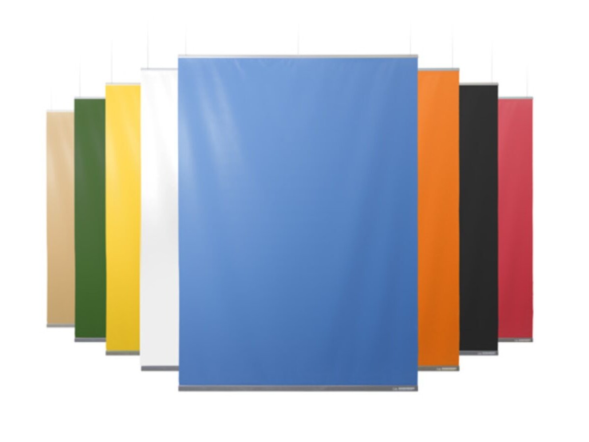 Optional 18oz colored vinyl material also available for our hanging partitions in a variety of colors. Contact us to learn more.