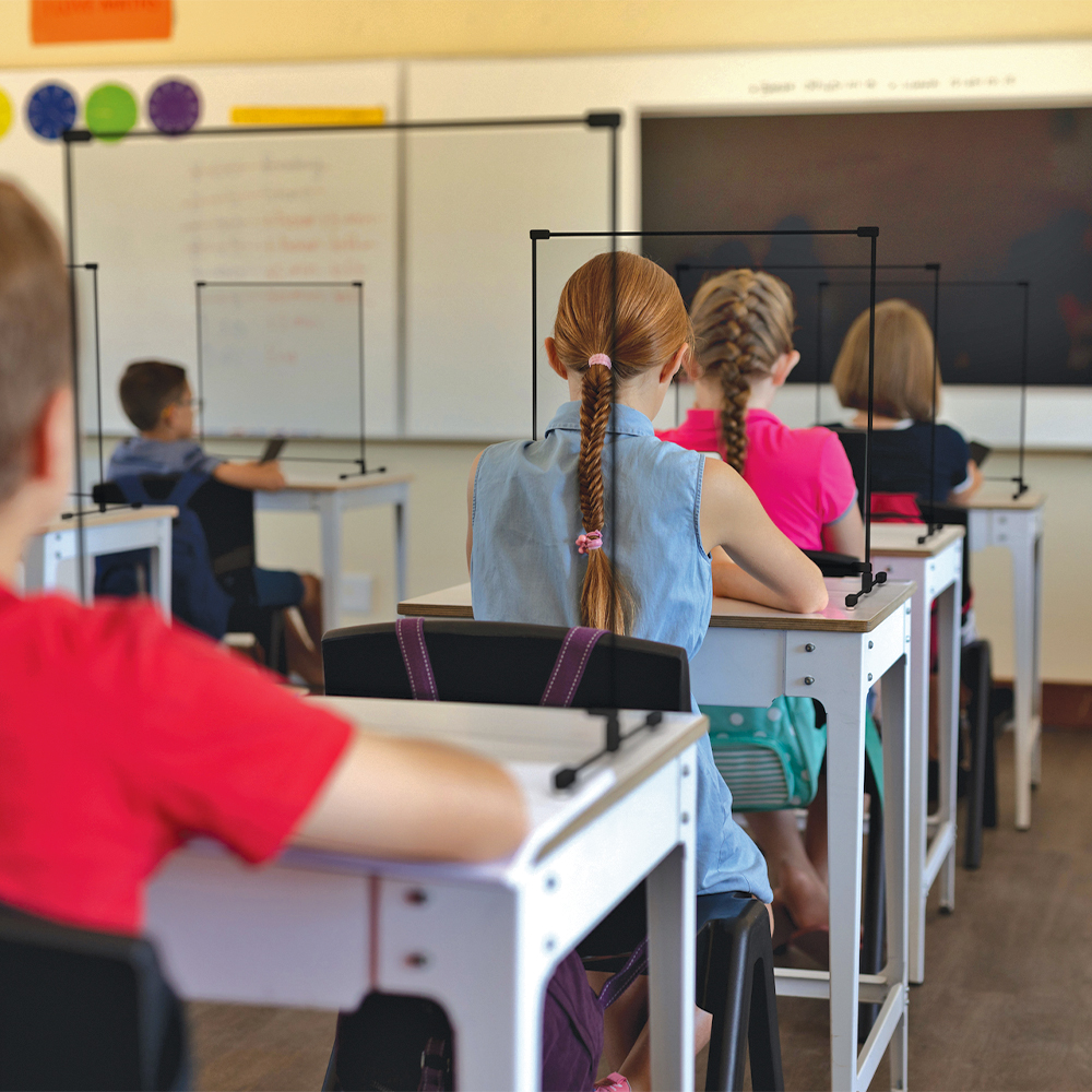 • 22″W x 20″H x 16″D safety partition coverage to fit standard school desks.