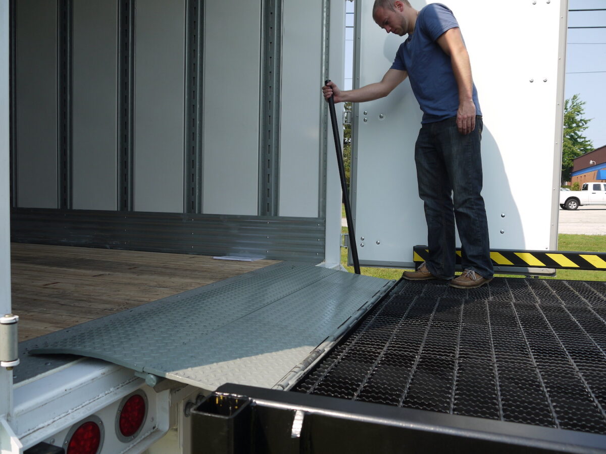 Our GMEOD series is manually operated. The dock attendant simply inserts the activation bar into the unit and pulls downward to engage the platform and lip. The attendant pushes the activation bar forward to put the lip to the “service ready” position.