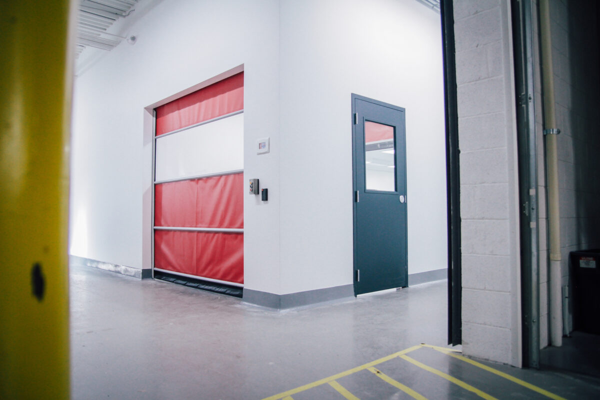 Secondly, our heavy duty industrial vinyl doors come standard with proprietary Goff’s control systems. These systems integrate with a wide array of sensors, building control systems, and security options to outfit your facility. Whether you’re interlocking doors to prevent cross contamination, or installing additional fire safety features, Goff’s doors have you covered.