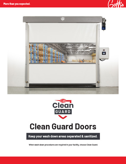 The premium solution to fast-acting vinyl doors in wash down areas. Built with corrosion resistant materials, our Clean Guard doors are built to maintain cleanliness at your facility.