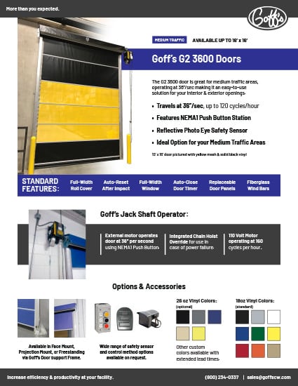 Goff’s offers a variety of options & accessories to maximize efficiency & productivity wherever a Goff’s high speed vinyl doors are placed in your facility.