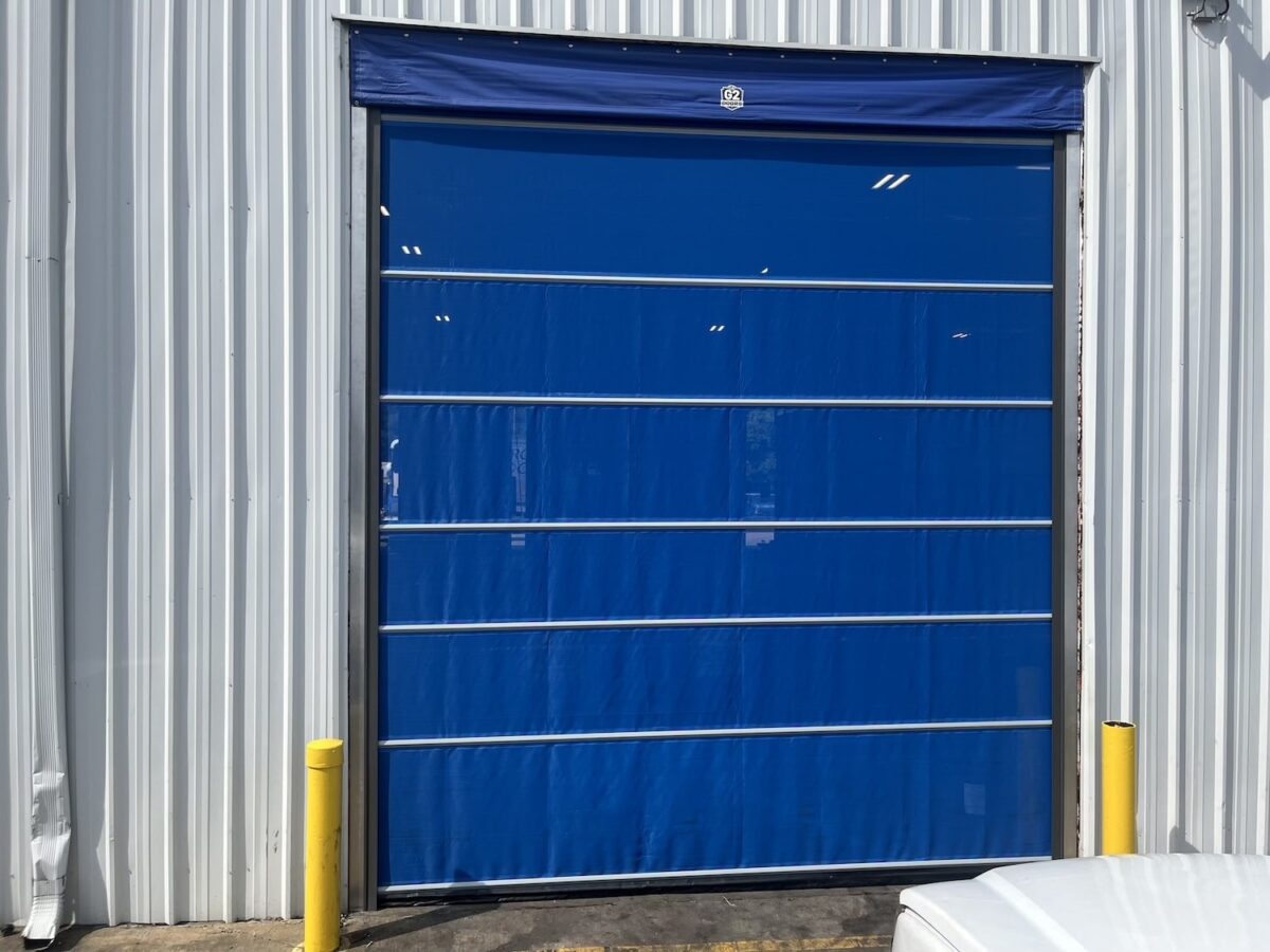 Firstly, Goff’s custom industrial vinyl doors are available in a range of speeds and sizes. We offer from 54”/sec (120 cycles/hr) to 18”/sec (24 cycles/hour). Whether you have occasional foot traffic or steady forklift lanes, you’ll find a door that fits your needs. Even in harsh chemical or wet environments, our high speed vinyl doors maintain access & maximize efficiency. With doors available up to 16’x16’, G2 doors are a great choice for any opening at your facility. Looking for OSHA required fall protection at your loading dock? Check out our Fall Guard safety doors.