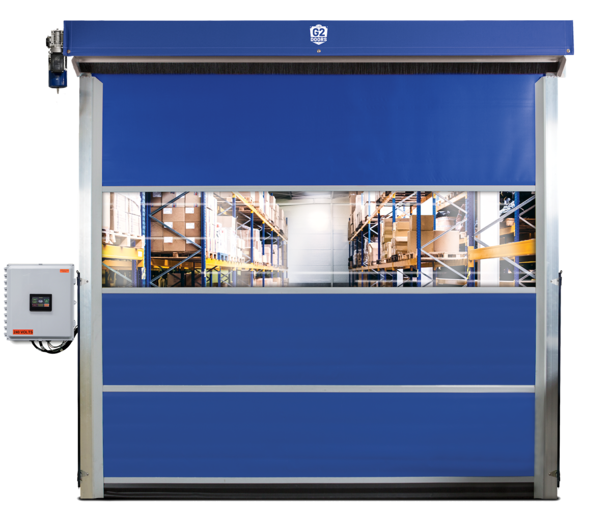 Goff’s custom industrial vinyl doors are available in a range of speeds and sizes. We offer from 54”/sec (120 cycles/hr) to 18”/sec (24 cycles/hour). Whether you have occasional foot traffic or steady forklift lanes, you’ll find a door that fits your needs. Even in harsh chemical or wet environments, our high speed vinyl doors maintain access & maximize efficiency. With doors available up to 16’x16’, G2 doors are a great choice for any opening at your facility.