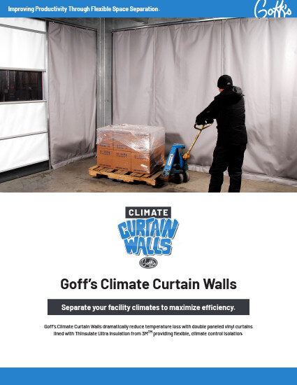 Constructing walls in your facility is expensive and time consuming, leaving you with permanent structures that can’t adapt to changing processes. Goff’s line of Industrial curtain walls allow you to place separation where needed and open up that space on demand for complete flexibility in your facility.