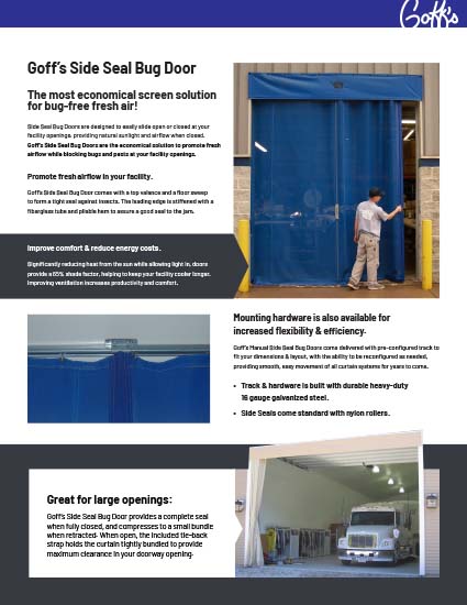 Click below to get a quote on our Side Seal Bug Curtain and start increasing productivity, and comfort at your facility.