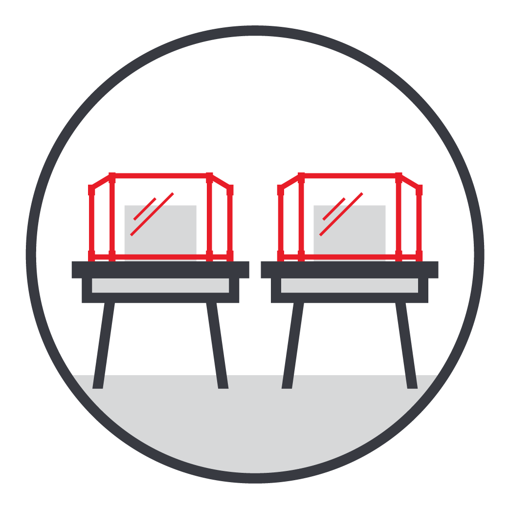 Place partitions between tables or workstations to safely maximize capacity while protecting from sneezes & coughs.